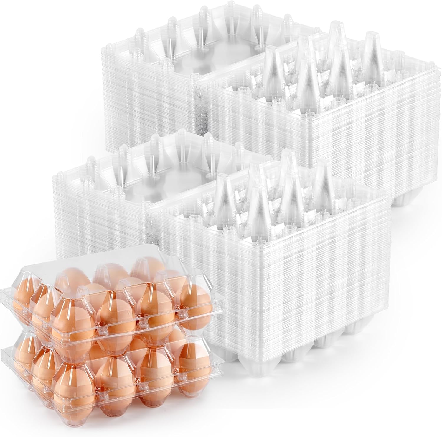 120PCS Egg Cartons Cheap Bulk, 12 Count Clear Plastic Egg Containers 2x6 Egg Cartons for Chicken Eggs, Reusable Egg Holder for Home Ranch Chicken Farm Commercial Market DisplayFeatures: ✔ Holds 12 count medium to large chicken eggs. ✔ Sturdy and stacked to optimize storage space. ✔ Great for family farm business market display storage. ✔ Eggs are visible with this clear and durable plastic egg box. ✔ Made of quality recycled PET plastic, are sturdy enough to be reused. Specifications: Size: 11.65" x 4.13" x 2.76" Color: Clear Style: 2x6 Grids Material: Plastic Package Included 120 x Clear Egg Cartons