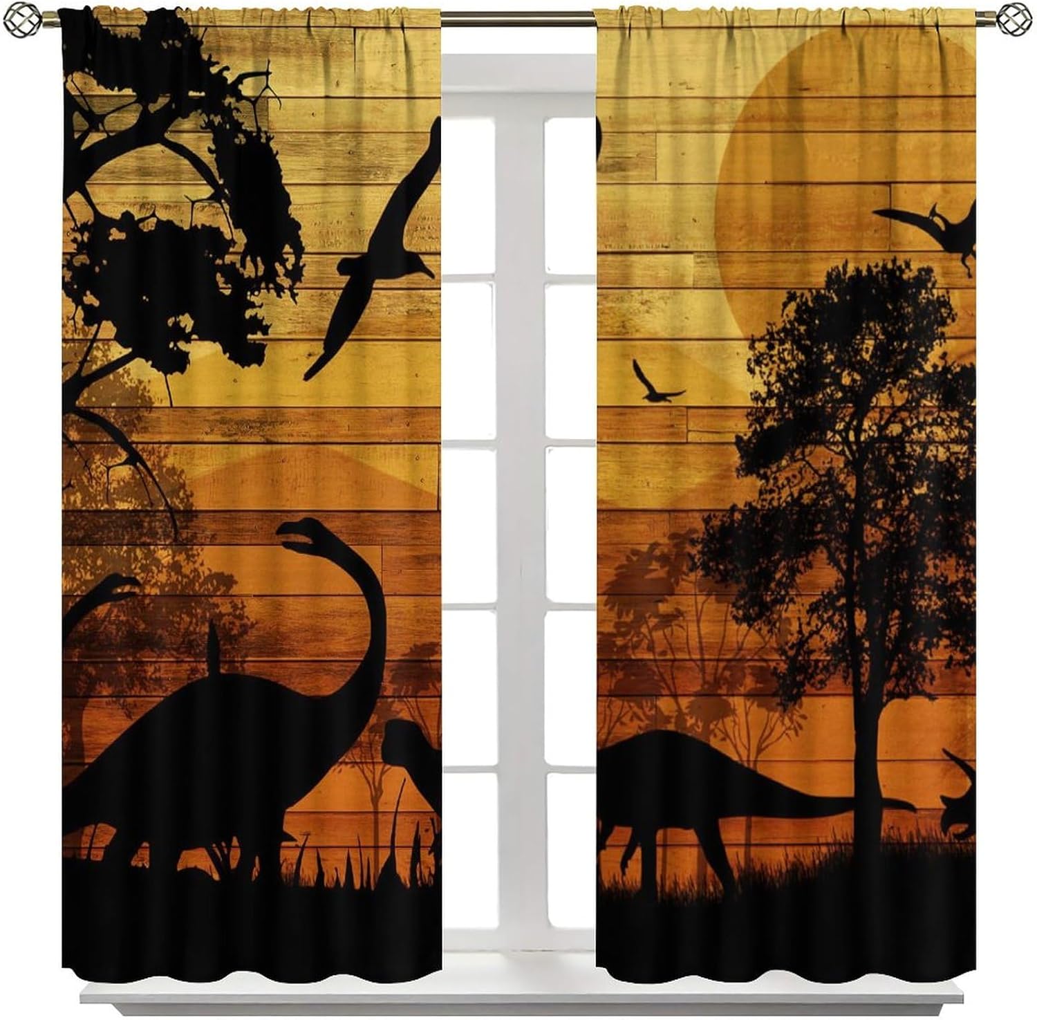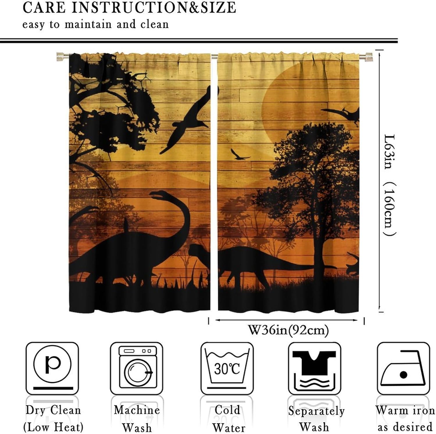 brebasf Rustic Dinosaur Silhouette Patterned Blackout Curtains Comes in eight sizes: Total size: 45" L × 42" W (114cm × 107cm),Includes two pieces, each of which measures:45" length × 21" width (114cm × 53.5cm). Total size: 54" L × 42" W (137cm × 107cm),Includes two pieces, each of which measures:54" length × 21" width (68.5cm × 53.5cm). Total size: 63" L × 42" W (160cm × 107cm),Includes two pieces, each of which measures:63" length × 21" width (160cm × 53.5cm). Total size: 63" L × 55" W (160cm × 140cm),Includes two pieces, each of which measures:63" length × 27.5" width (160cm × 70cm). Total size: 63" L × 63" W (160cm × 160cm),Includes two pieces, each of which measures:63" length × 31.5" width (160cm × 80cm). Total size: 72" L × 63" W (183cm × 160cm),Includes two pieces, each of which measures:72" length × 31.5" width (183cm × 80cm). Total size: 63" L × 72" W (160cm × 183cm),Includes two pieces, each of which measures:63" length × 36" width (160cm × 91.5cm). Total size: 84" L × 84" W (214cm × 214cm),Includes two pieces, each of which measures:84" length × 42" width (214cm × 107cm). This Abstract Old Wooden Board Jungle Animals Dino Prints Curtains liven up your indoor or outdoor spaces with a sense of airiness and beauty.Function: 1. Made of durable polyester fiber,soft and light. 2 The package includes: 2 panels. Curtain material: 98% polyester fiber. Provide a beautiful appearance for your bedroom,living room or office. 3. The curtains are grommet,which can be used with any standard curtain rods. Our products can be used as living,room curtains. Mother's Day,Christmas,Halloween,Thanksgiving,New Year's party decorations at home! We believe that you will like this curtain as much as we do. If you are not satisfied with our products,please contact us,we will solve any problems encountered by the products for you,so that you are satisf