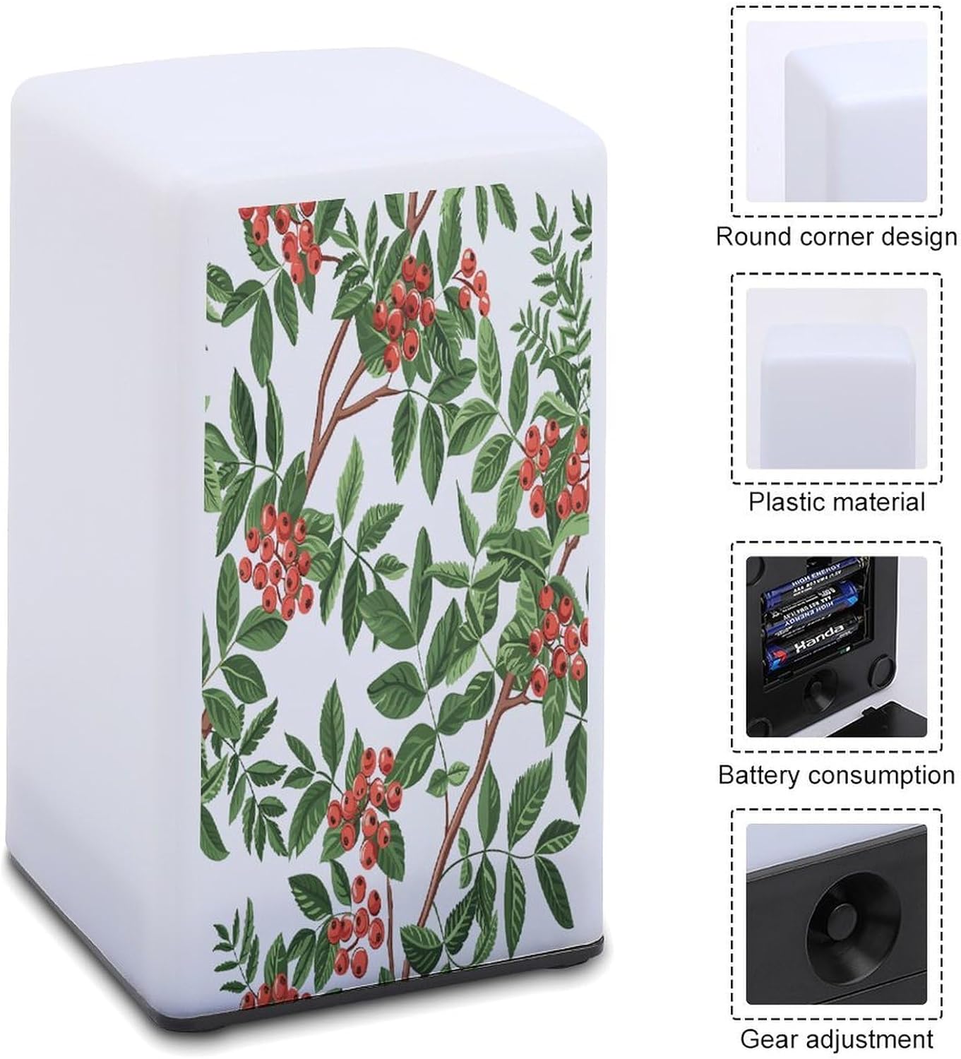 Tired of groping in the dark at night? Looking for a desk lamp that's both practical and stylish? Our Red Berry Art printed small desk lamp is the solution you've been looking for—designed to make everyday life easier and more personalizedSay goodbye to the same old, cookie-cutter desk lamps. We use UV printing technology to imprint your lamp with a design. Even years later, these designs remain visible, transforming an ordinary desk lamp into a treasured keepsakeThe soft, warm glow is a game-changer. For night owls, it means no more waking up your partner. For those afraid of the dark, it's a nighttime companion that dispels the darkness and helps them fall into a deep sleep. Even at the bar, it creates a warm and cozy atmosphere without being overly dazzlingIt's compact and portable, making it easy to place anywhere—by your bed, on a bathroom counter, or to take with friends. Its thick plastic material withstands accidental knocks and can be kept clean with a quick wipeStruggling to find a gift that's both practical and thoughtful? This lamp for dorm ticks all the boxes. It'll be a unique gift that shows you care. Your friends and parents will think of you every time they open it