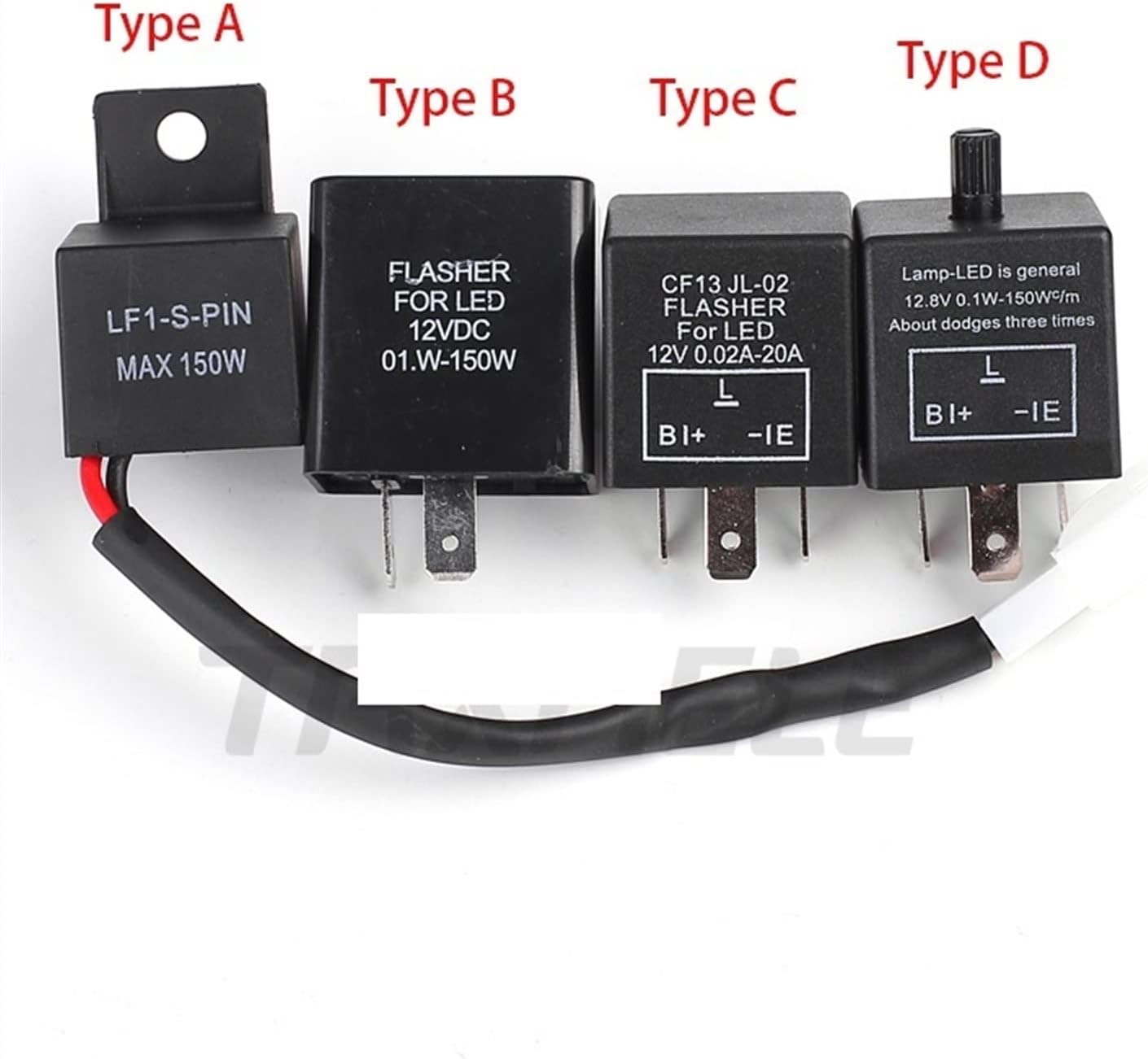RelaysOverload RelaysDC 12V LED Turn Signal Flasher Relay Three Gear Frequency Adjustable Speed Flash Relay Accessaries CF13 1Pcs1.ParameterTYPE A:Color: BlackMaterial: Metal & PlasticOperating Voltage 12V 11V15V Max Power 150W Flashing Frequency: 75-90 Times/Min Switch Power: 0.02A to 12A Operating Temperature: -40° C to +80°C Cable Length: 13cm (5.11 inch) Item included: 2-Pin LED Flasher Relay x1TYPE B:Operating voltage: DC 12V ,2PINOperating power: 0.1W-150WMaterial: ABS PlasticTYPE C:Model no..: CF13 JL-02Pin Length: Approx. 0.47 inch / 1.2cmVoltage: 12VPower: 240WSwitch Current: 0.02 - 20ASize( L x W x H): Approx. 1.2 x 1.2 x 1.2 inch / 3 x 3 x 3 cmTYPE D:The flasher is speed adjustablePin Length: Approx. 0.47 inch / 1.2cmVoltage: 12VPower: 240WSwitch Current: 0.02 - 20ASize( L x W x H): Approx. 1.2 x 1.2 x 1.2 inch / 3 x 3 x 3 cm2.Product displayRM18203445796693822