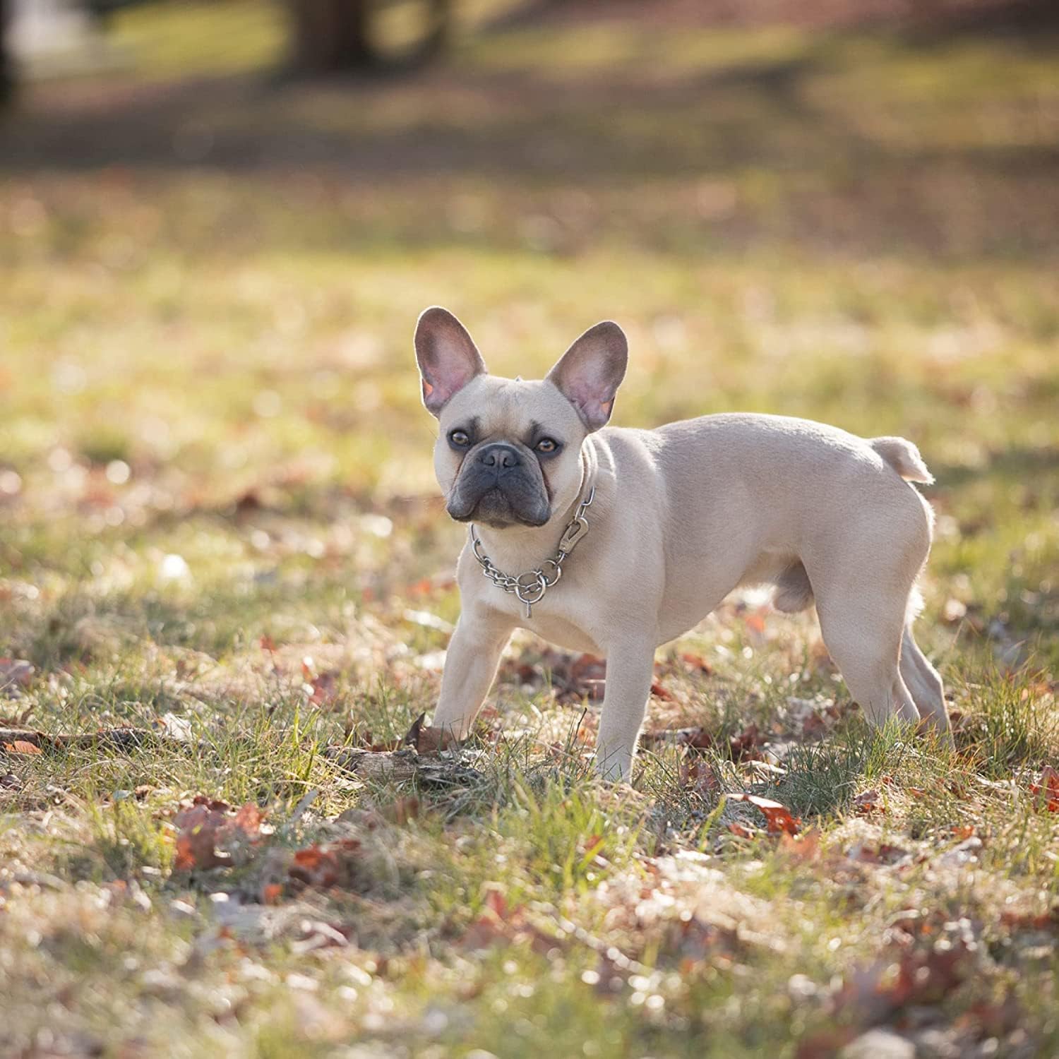 Size: This Herm. Sprenger fur saver dog collar is made of stainless steel and is designed for dogs with the neck circumference up to 18 inches (47 cm). Overall collar length is 21 inches (54 cm) by 3mm wire gauge. Link size 1.6 inch (4 cm) long and 0.5 inch (1.2 cm) wide. Design:Stainless-steel fur saver collar has martingale assembly chain and long smooth links (1.6 inch (4 cm) long and 0.5 inch (1.2 cm) wide). It is well suited for dogs with fine hair and long hair. Quick release snap hook is permanently attached to the assembly chain and fastens the collar by connecting it to the collar links. Robust design of the snap hook provides tight enclosure and prevents accidental opening. You can adjust the collar by attaching the snap hook to the links down the chain. Functionality:The chain serves as a behavior correction collar. The collar tightens when the dog is pulling on a leash. The control loop on the collar should have enough room to pull into a symmetrical triangular shape when a leash is attached and pulled. When the leash is attached and pulled tight, the O-rings on each side of the control chain should never touch. There should always be two fingers width (about 2 inches) between the side O-rings.Professional Quality: Made in Germany with precise German engineering, Sprenger offers reliability and quality by the world's foremost manufacturer of top-quality training collars. Each O-ring and the snap hook are stamped with the Sprenger seal of quality HS-Germany.