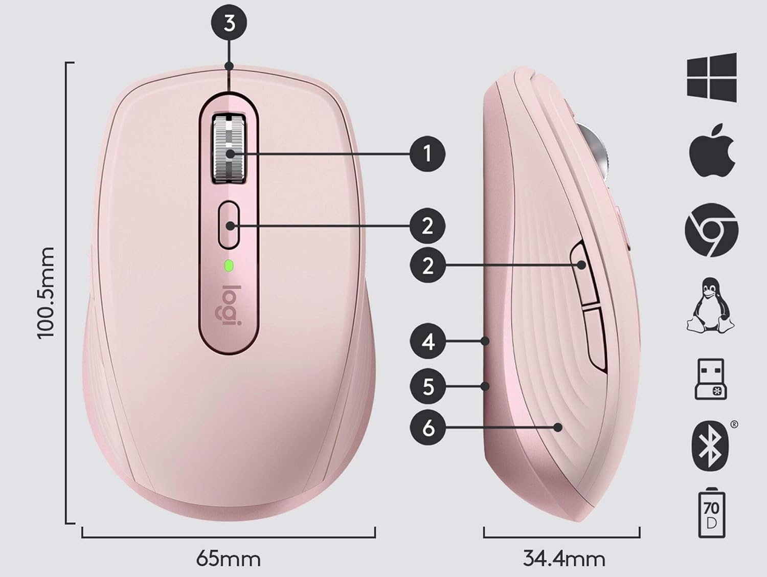 • PORTABLE COMFORT: MX Anywhere 3 travels with you – no matter where you work. The low-profile ergonomic design is contoured for your hand, with ultra-soft silicone side grips for go-anywhere comfort
