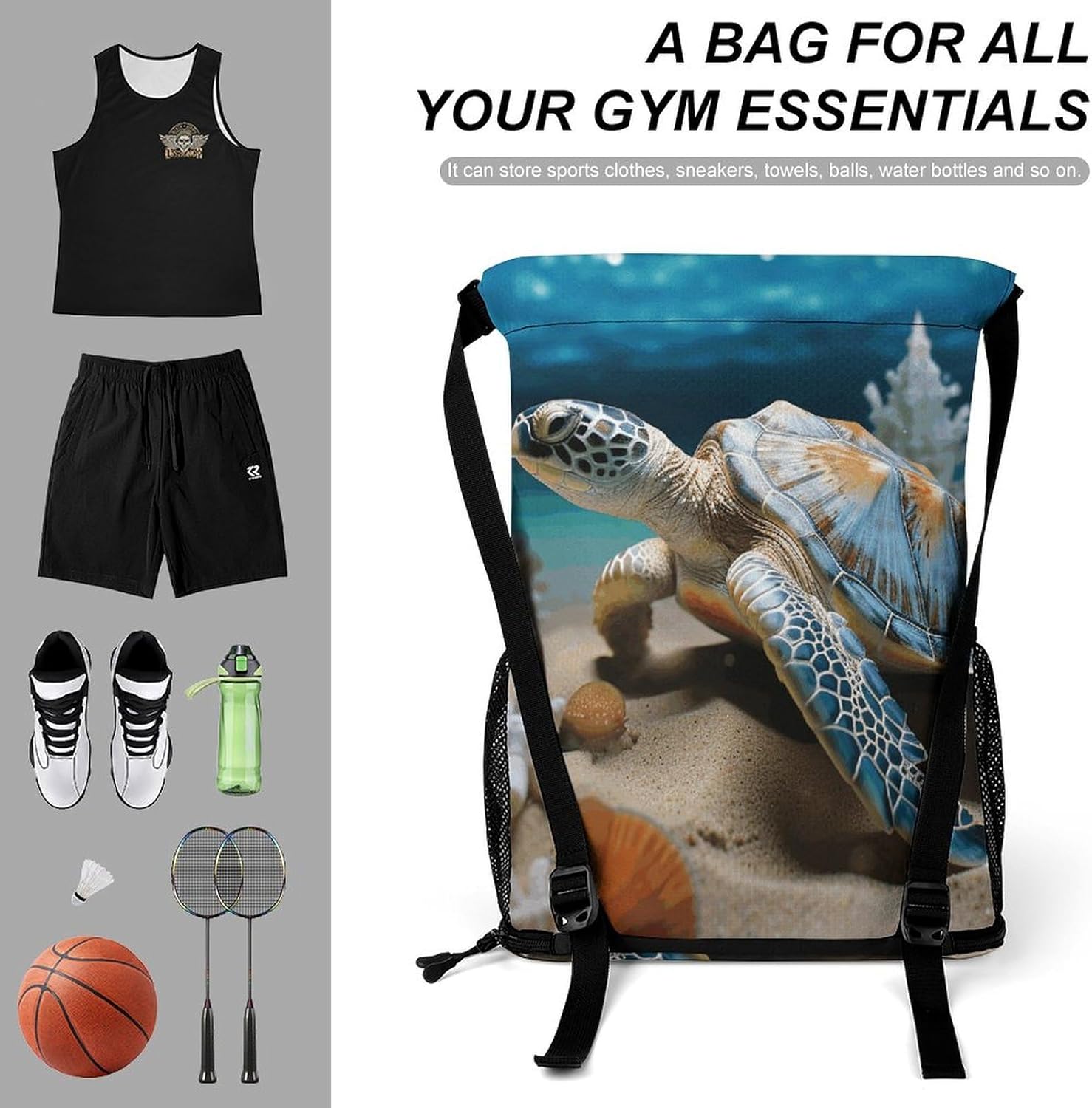 Our premium drawstring bag is the ideal companion for your active lifestyle. Made of premium honeycomb fabric, this pocket is not only durable but also has a comfortable textureA major feature of this Sea Conch Shell Starfish Turtle drawstring gym bag is the wet/dry separation design. Whether you are coming back from a sweaty workout or traveling in the rain, you can easily separate wet clothes or shoes from dry essentials such as electronics, documents or cosmetics. This innovative design keeps your items neatly organized and protectedWith a large zipper opening, it is very simple to access items. The zipper design conforms to the usage habits of most people and can be opened and closed smoothly and easily. You can easily and quickly get what you needThe sturdy structure of this sports bag is another feature. The edges of the shoulder straps are carefully processed, which makes it more resistant to heavy objects than ordinary bags. This ensures that it can accompany you in all sports and adventures without worrying about damageOur Sports Drawstring Backpack pocket also has a large capacity. It can hold a variety of items, from clothes and shoes to iPads, books, keys, ID cards, cosmetics and wallets. It is suitable for various occasions, such as traveling, going to work, fitness, etc. No matter where you go, this pocket can meet your storage needs