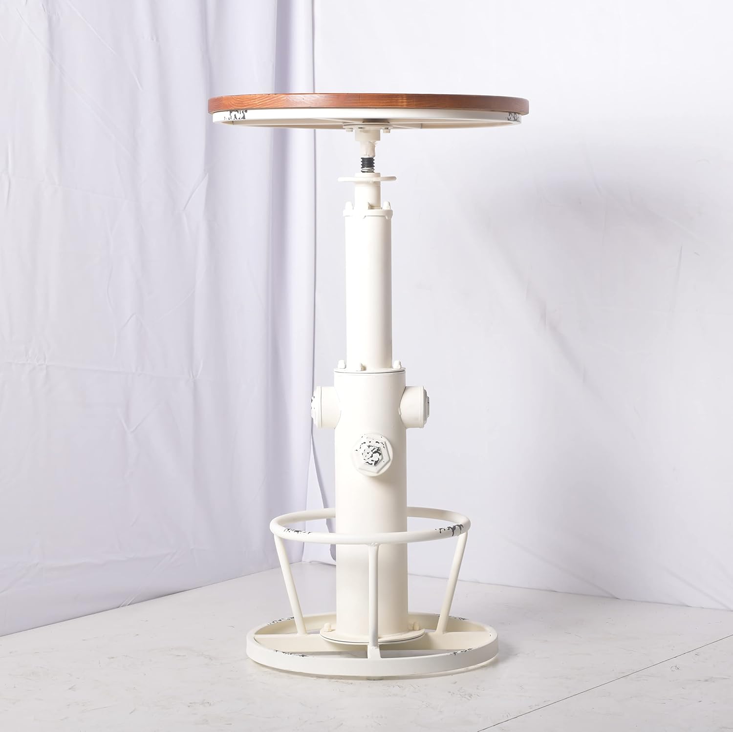This is a stylish industrial stylish bar table , use indoors as coffee table ,retro wood color ,Antique White brush decorate to extra stylish table, Perfect to use as a pub table.In additional ,the table is unassembled , it is easy and quick to assemble by yourself, you can enjoy happiness of DIY a chair yourself.Height Adjustable: 25cm / 9.84in Seat Size: dia 60 * 3cm / 23.62 * 1.18in . Table size:48 * 48 * 98-123cm / 18.90 * 18.90 * 38.58-48.43in(D * W * H) Chair Weight: 14kg / 31LB Table * 1 Assembling Instruction * 1