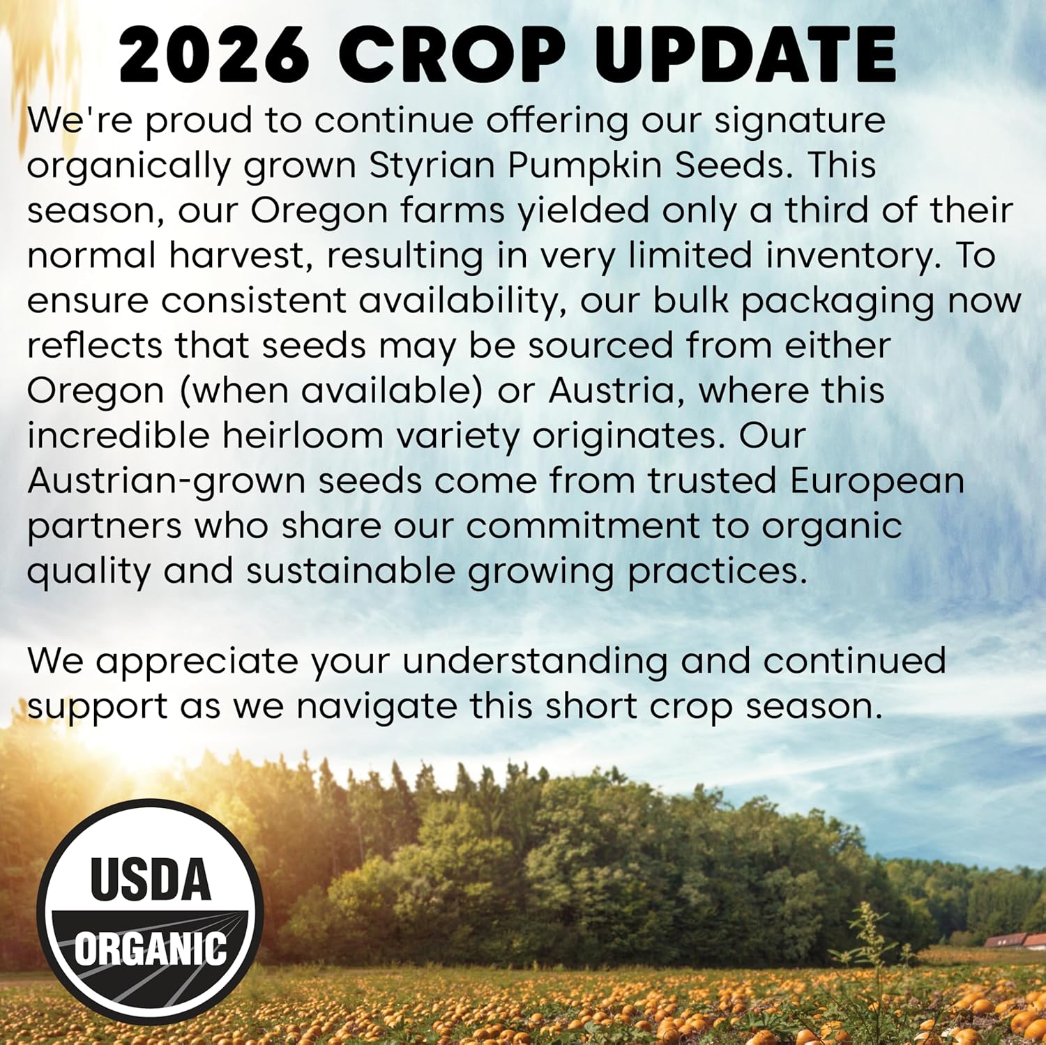 | Specialty | GMO Free, USDA Certified Organic |
